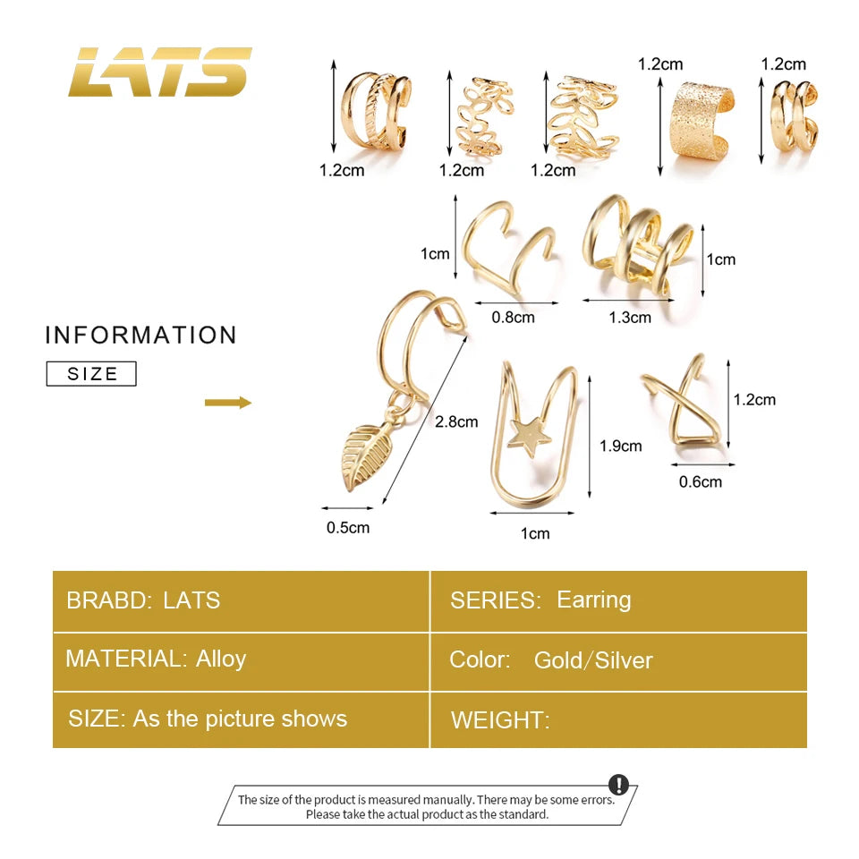 10 Pcs Leaves Clip Earrings for Women Rose Gold Color Creative Simple C Ear Cuff Non-Piercing Ear Clips Set Trend Jewelry Gift