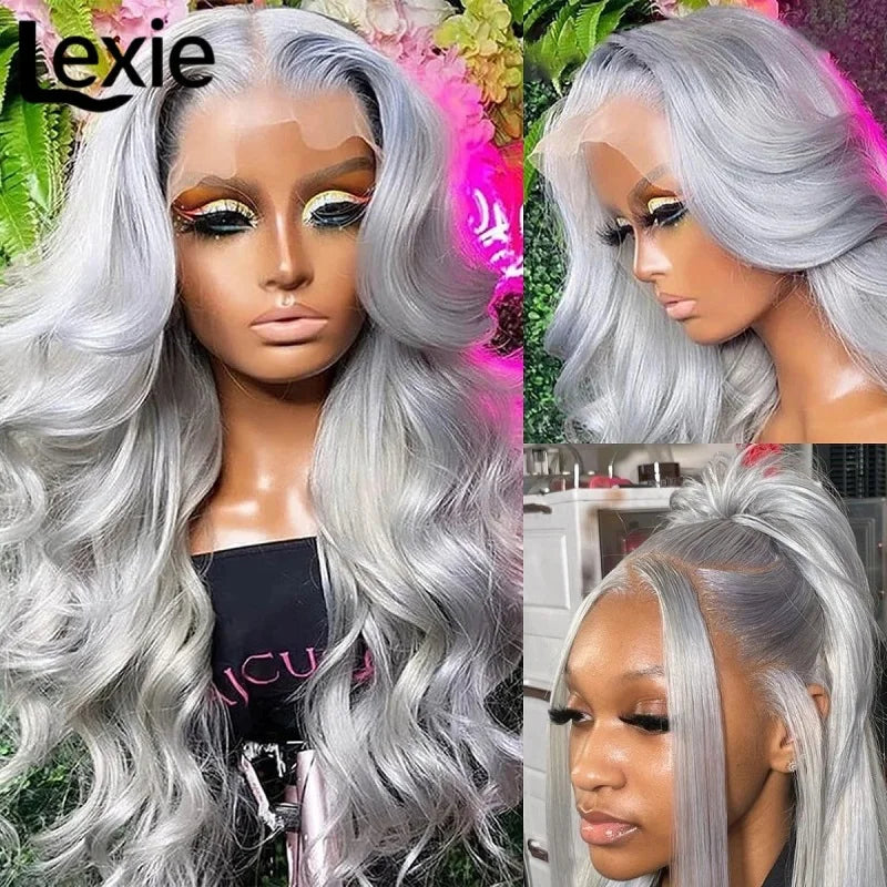 30 Inch Grey Human Hair Wigs Raw Vietnamese Silver Body Wave Lace Front Wigs For Women Gray 13x6 Transparent Lace Frontal Wig