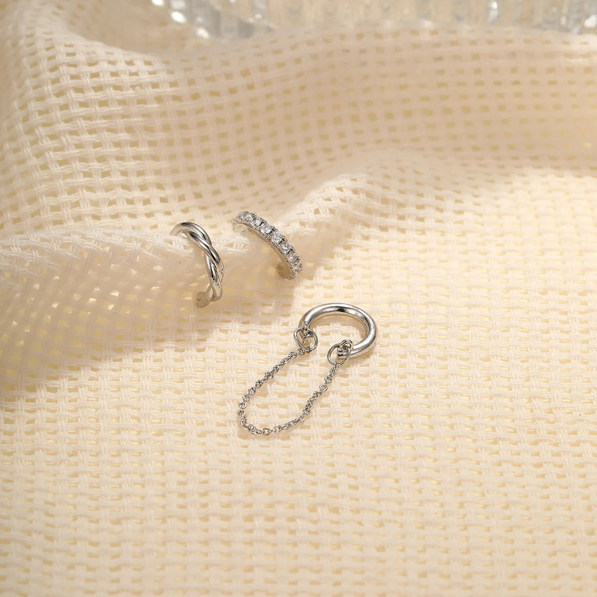 3Pcs Simple Crystal Ear Cuff For Women Teens Gold Silver Color Non Piercing Fake Cartilage Clip Earrings Set Fashion Jewelry