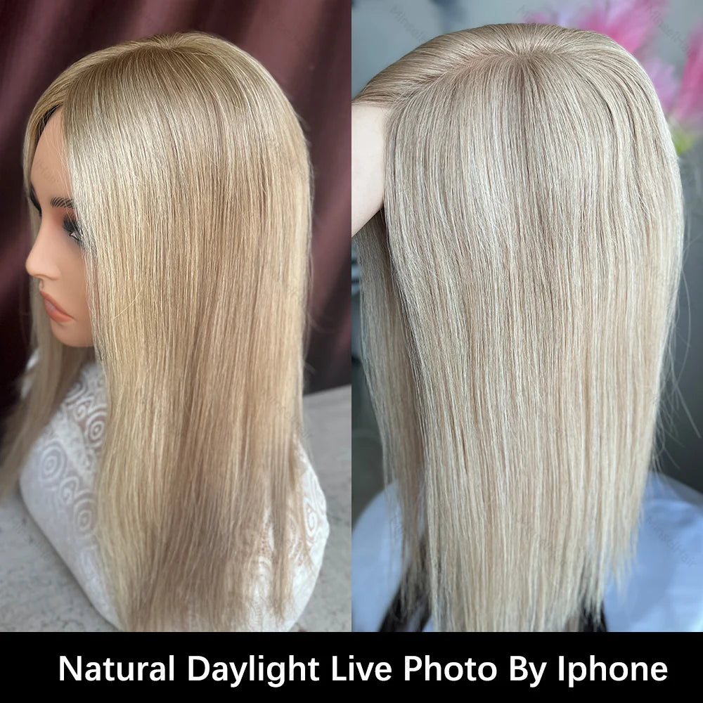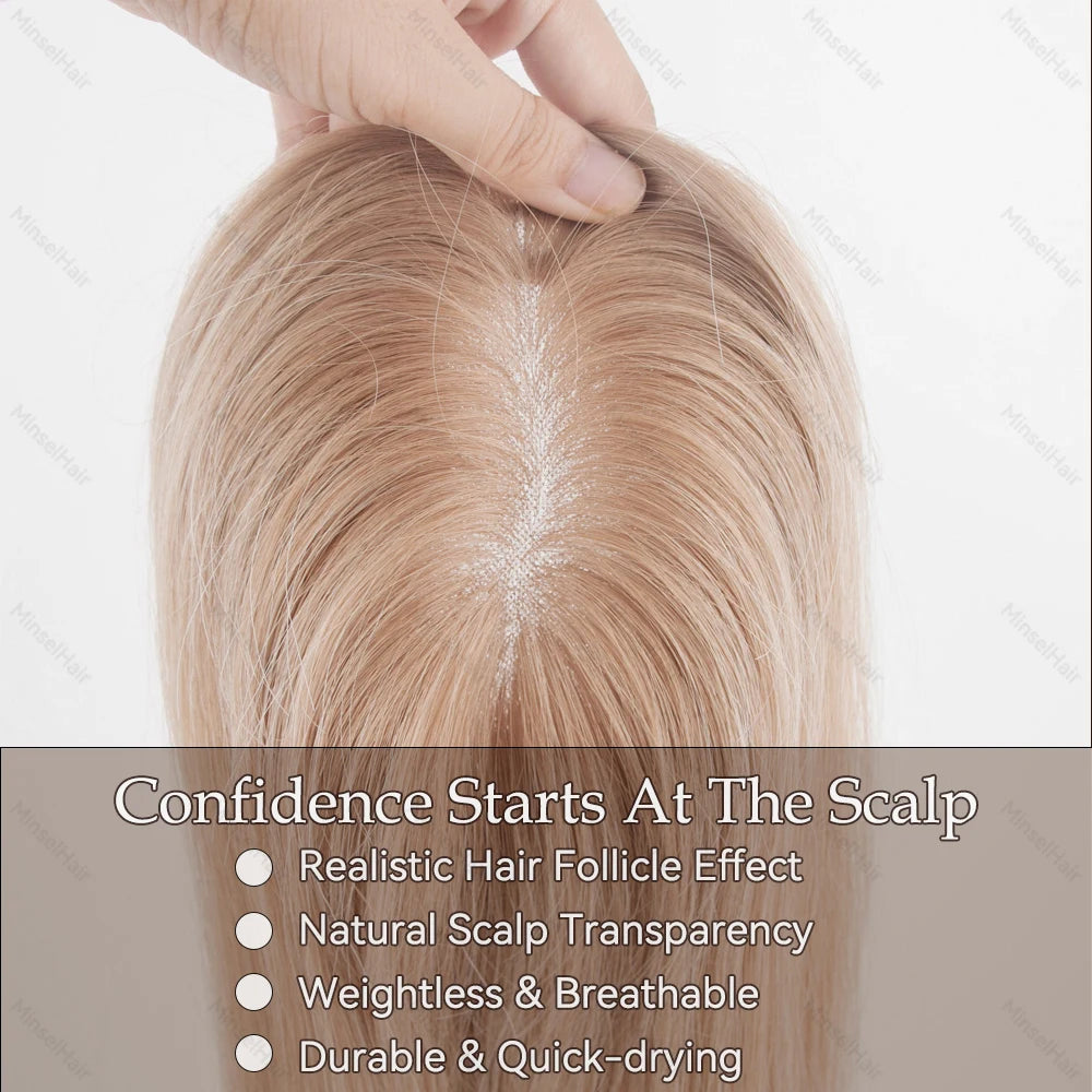 Ash Brown Human Hair Toppers 5.5X6.5 Mono Base Cuticle Remy Premium 14"-16" Hand-Crocheted 130% Density Breathable
