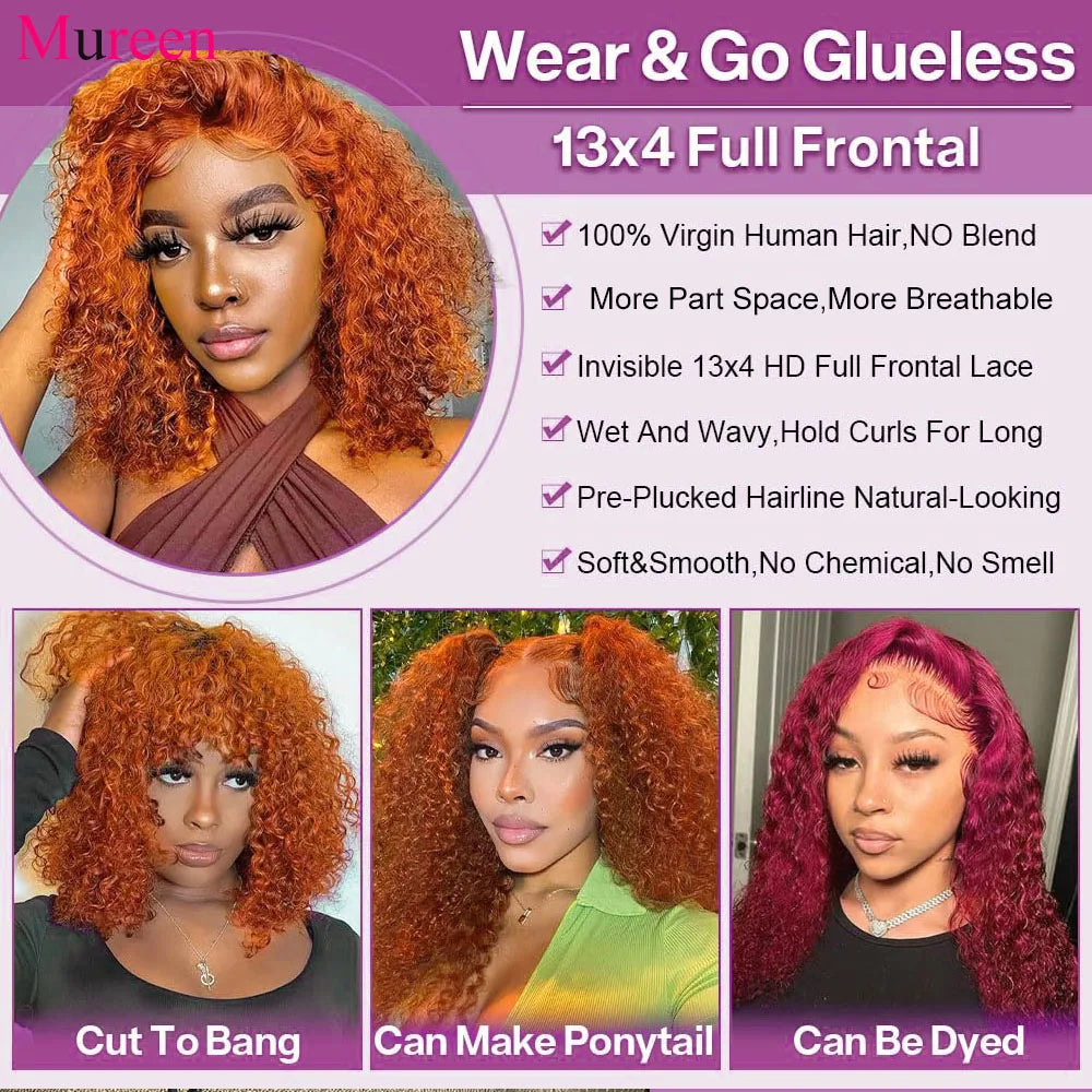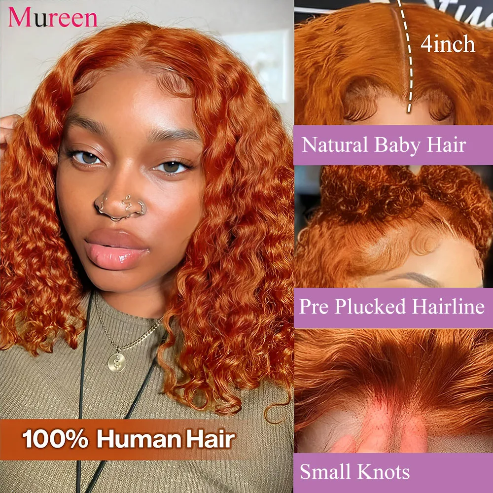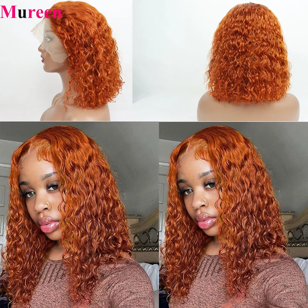 Ginger Orange Bob Wig Deep Wave Lace Front Wig Human Hair Water Wave 13x4 Pre Plucked HD Lace Front Human Hair Wigs For Women