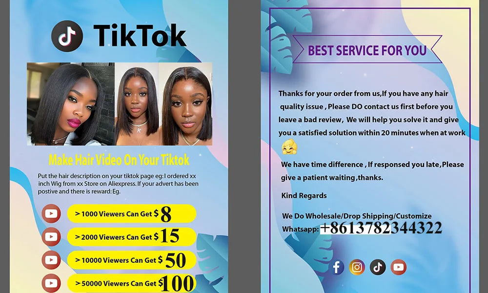 Hair Material : 100% unprocessed human hair