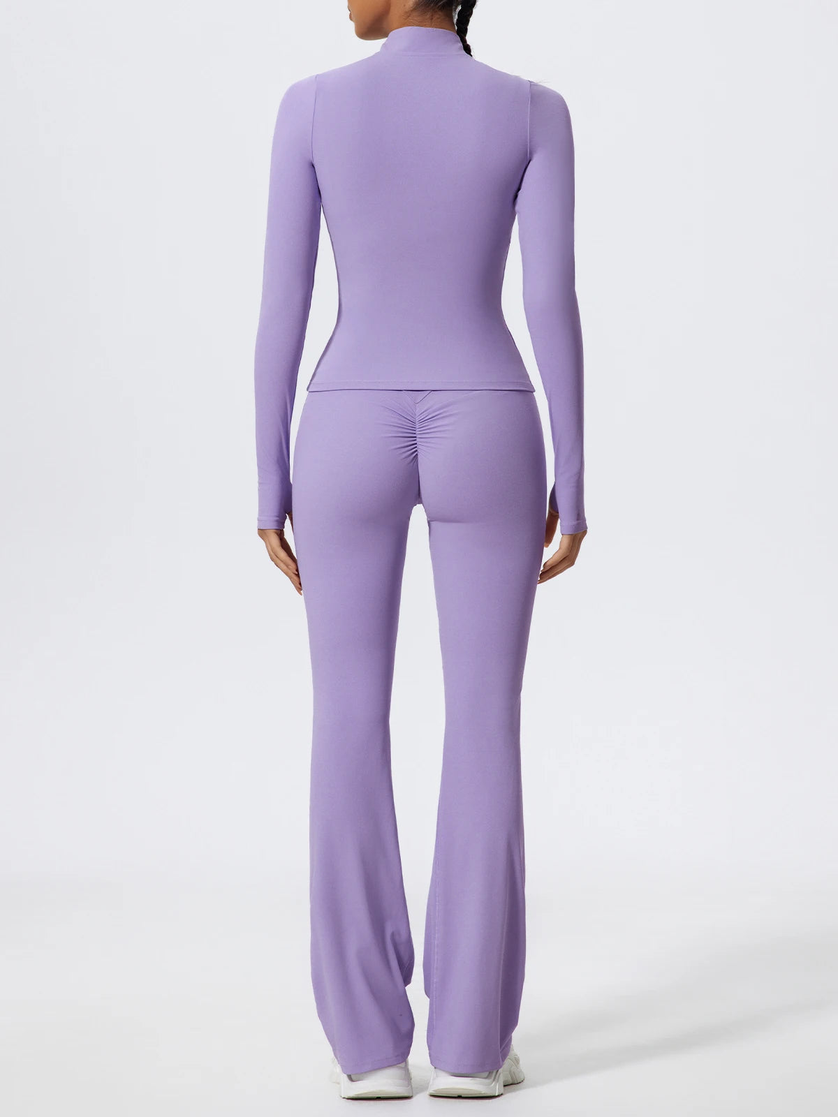 Hearuisavy Half Zipper Yoga Suit Outdoor Workout Clothing Casual Gym Set Women Flared Pants 2Pcs Sports Long Sleeves Shirt Suit