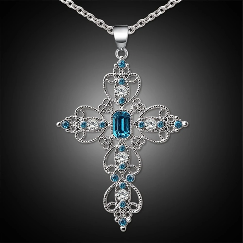 Large Detailed Cross Drill Pendant Jewel Necklace Silver Color Tone Gothic Punk Jewellery Fashion Charm Statement Women Gift