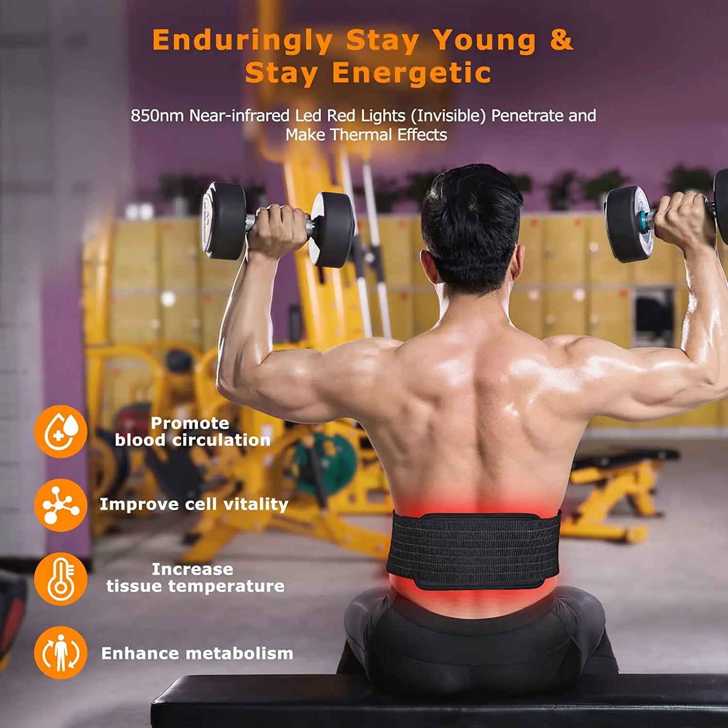 LED Red Light Therapy Belt for Pain Relief 660nm 850nm Red Infrared Light Pad for Waist,Back,Abdomen,Knees,Wrists Joints Muscle