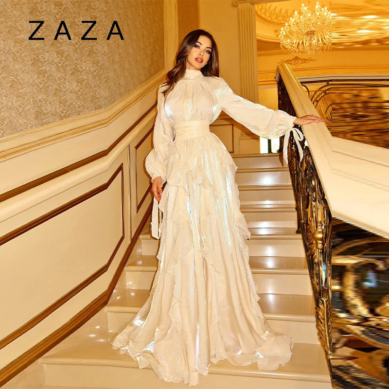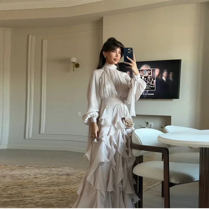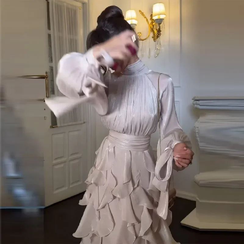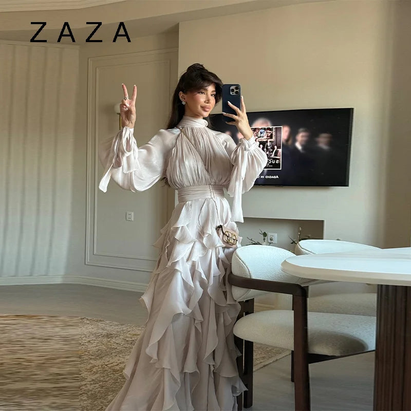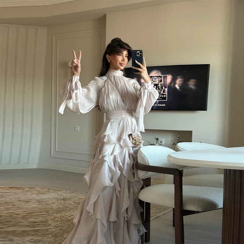 Shinny Ruffles Hem Maxi Dress A Line Long Sleeve Slim Fit Party Long Robes Lace Up Luxury Club Vestidos 2025 Lady Summer Gowns