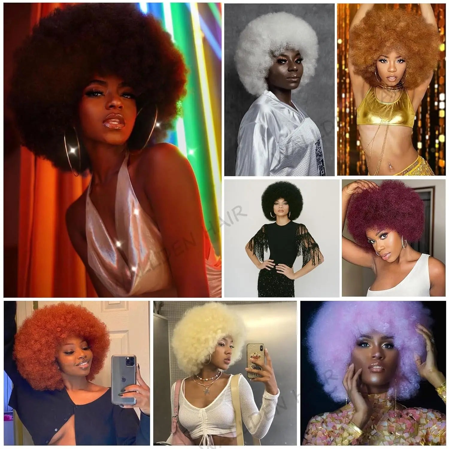 Synthetic Hair Afro Kinky Curly Blonde Wig For Women Mix Brown 70s Machine Made Huge With Bangs Short Bouncy For Daily Party Use