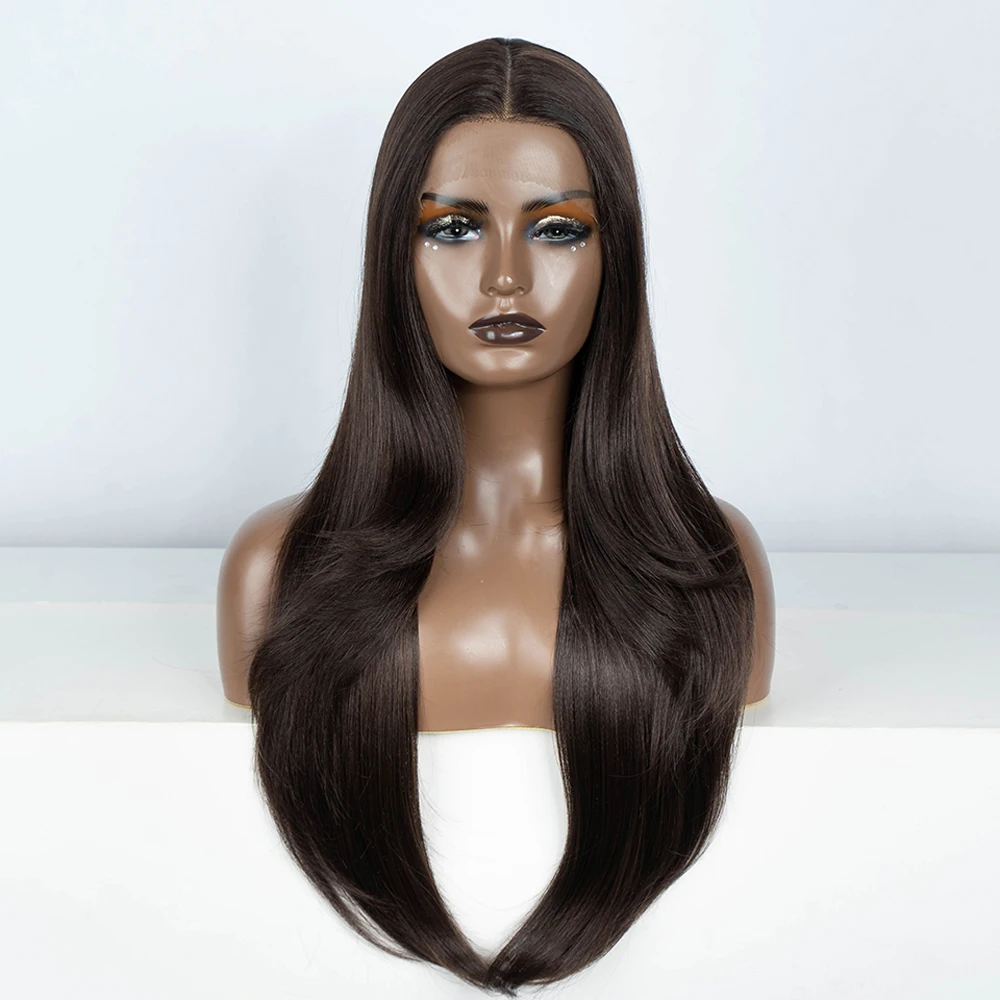 Synthetic Lace Front Wig 28" Straight Ombre Chocolate Brown lace Wig Cosplay part Wig For Women Lace Wig synthetic Lace Wig